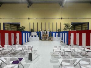 本日は貝塚で建設中のテント建設現場に行ってきましたよ。