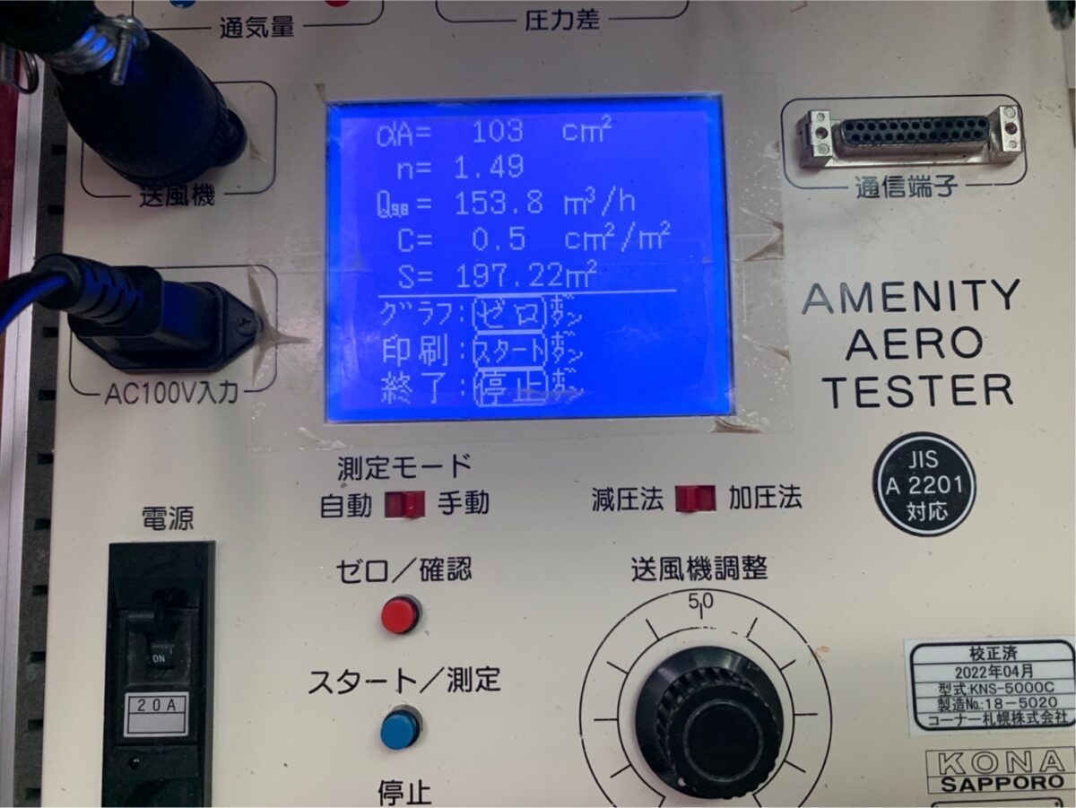 その中で半分の値で完成しているとのこと。最高の気密性住宅といえますね。