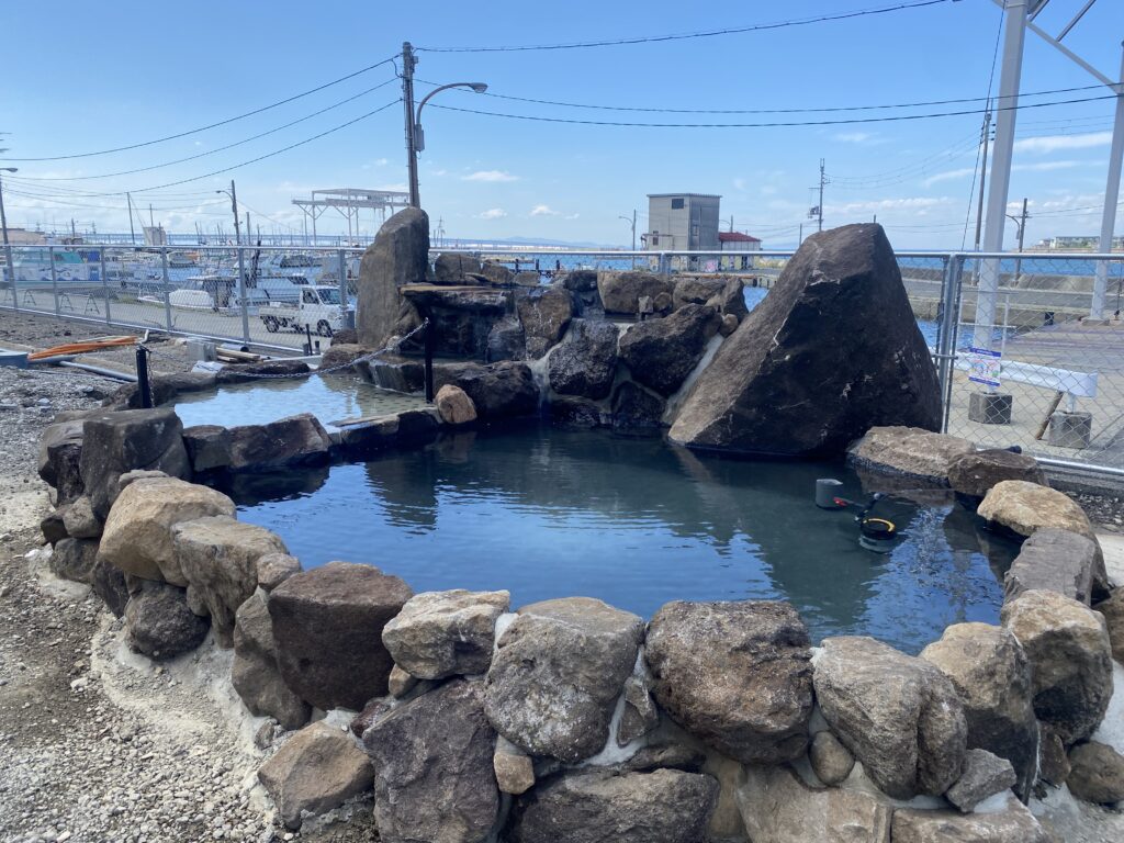 そして、お外は浜焼きコーナーになっているのですが、そこの一角になんと滝つきのプールが!