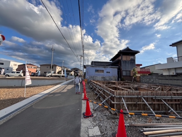 基礎工事を行っている最中で、型枠を組み立てていましたよ!
