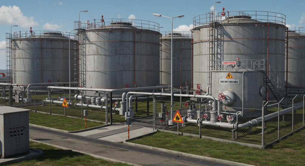 - 屋外タンク貯蔵所: 危険物を屋外のタンクに貯蔵する施設