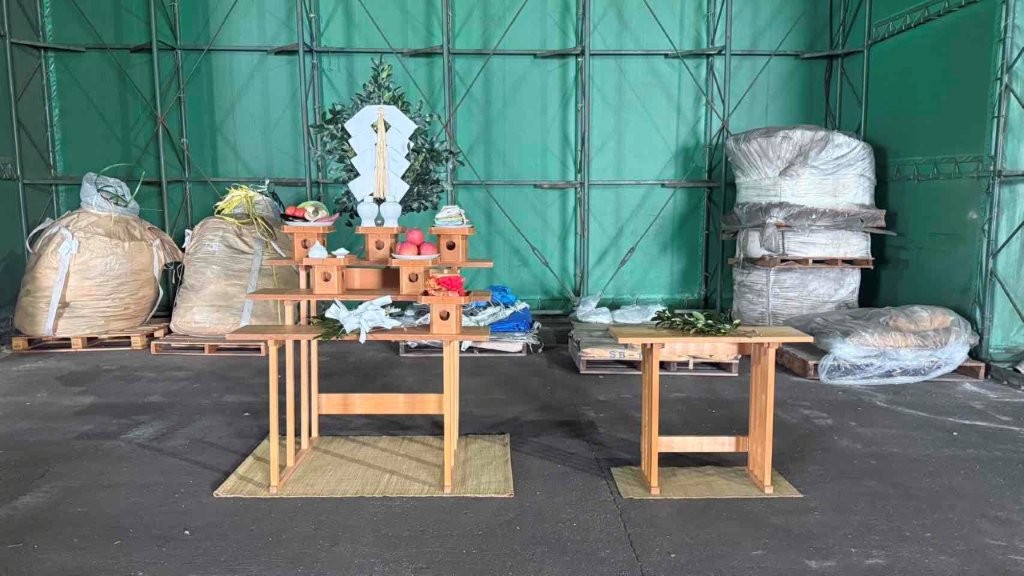 神主様の朗々たる祝詞(のりと)が、高く広い倉庫内に響き渡ります。