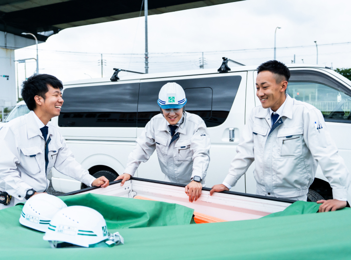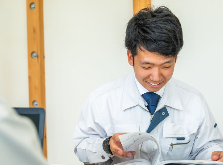 作業中に問題が起こることはよくあります。土を掘っていくと管があったこともありました。そのときは急いで業者を呼んで道筋を変えましたが、イレギュラーはしょっちゅうです。必然的に業者・施主と話すことが多いので、伝え方は成長したと思います。しゃべるスピードが速いので、要点を明確にしてハキハキ話すことを心掛けています。入社直後はわからないことばかりなので、質問ばかりです。でもその前に一度考えて自分の解答を出すことが大切だと思います。仕事は、どこではなく、誰と働きたいかが大切ではないでしょうか。当社は、一緒に働きたいと思える人たちがたくさん。楽しく過ごしています。