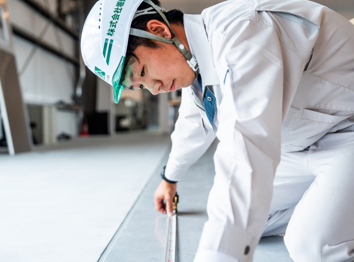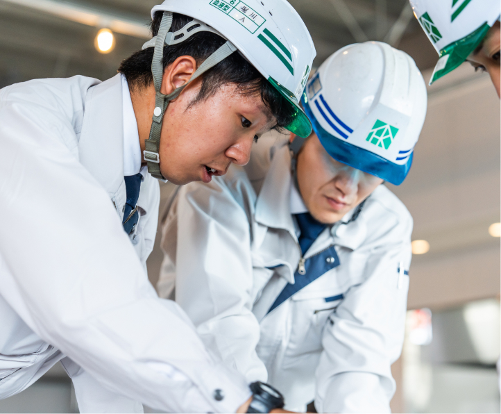 入社して約2年。たくさんの現場を経て、現在は保育園の大規模の修繕工事に就かせて頂いています。様々な業種の職人さんたちの手配・段取りなどをさせてもらっています。最初は業者さんに電話をかけるのも緊張してしまい、回数を重ねていくことで、業者さんに伝えなければならないことが何なのかがわかってきました。監督というのは、現場の指揮者の立場になるので業者さんにしっかり内容を伝えないと現場が進んでいかないです。わからないことがあって聞くのが恥ずかしかったり、緊張したりすることがあると思いますが、聞かぬは一生の恥になるのでその気持ちに少しアクセルを踏んでバンバン聞いていくことが大事だと思います。